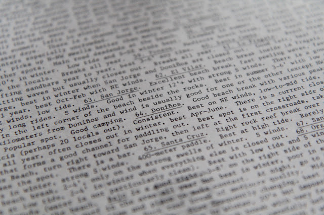 En aquel momento no lo tenían a mano, pero me prometieron que lo buscarían. Y un año después, hace ya unos meses, Vicente me daba la sorpresa con los seis folios, ya en papel amarillento por el paso del tiempo, del artículo original del Surf Report de junio de 1985. Seis páginas completísimas con una lista de 87 olas surfeables, desde la desembocadura del río Bidasoa hasta Santa María de Oia. En total 9 playas en Euskadi, 32 en Cantabría, 9 en Asturias y 36 en Galicia. La parte gallega, sin duda la más completa de todo el reportaje, fue elaborada por los hermanos Irisarri en la parte que cubre las olas del Sur de Galicia, y por Carlos Bremón y Vicente Irisarri para el Norte de Galicia. El texto original, con la idea de que no se perdiese detalle, fue traducido al inglés, antes de su envío a la redacción de Surfer en Dana Point, por Marga Cal.